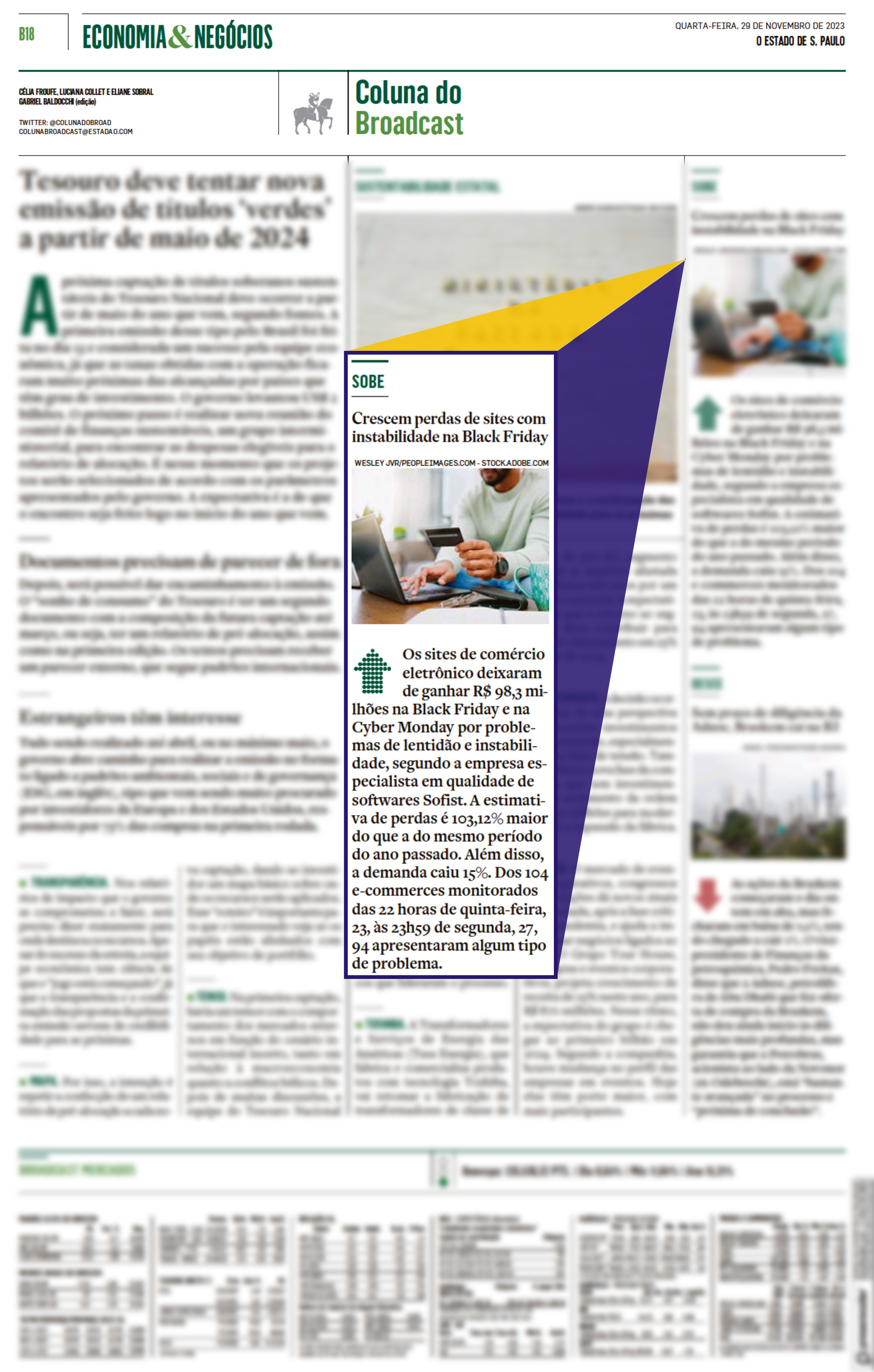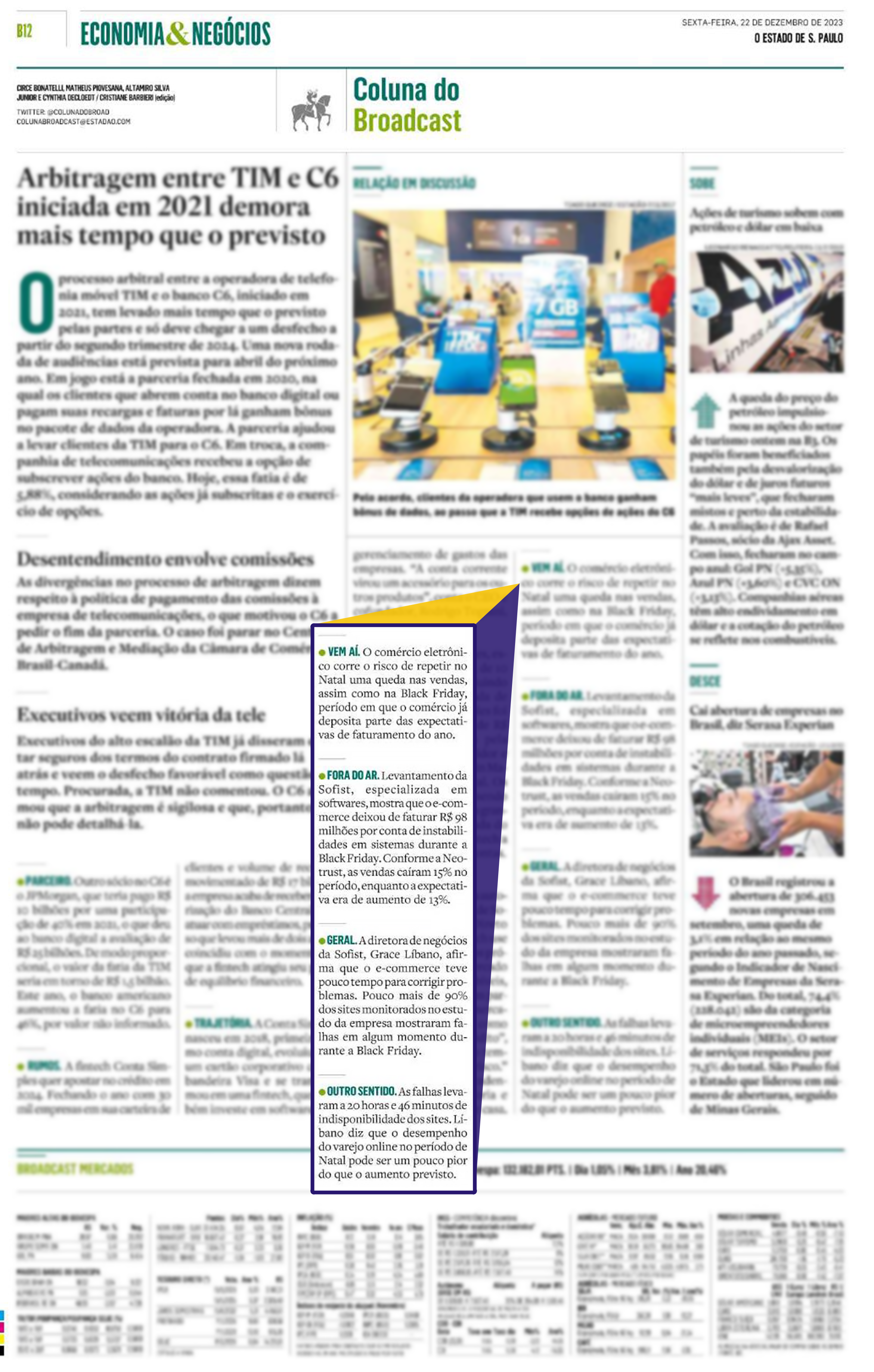 Estudo da Sofist sobre a Black Friday é destaque na Coluna do Broadcast, do Estadão impresso.
